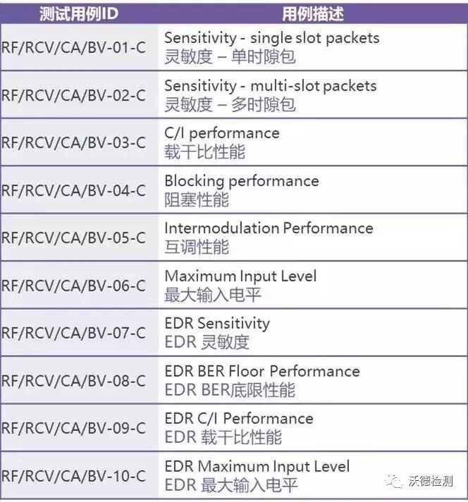 经典蓝牙(BR/EDR)射频RX接收测试项目有: