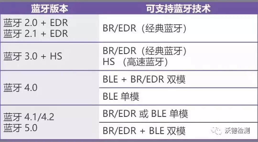 在蓝牙测试之前我们首先要确认蓝牙的版本以及其对应的功率等级,目前蓝牙技术主要分为以下几大类: